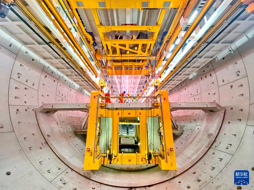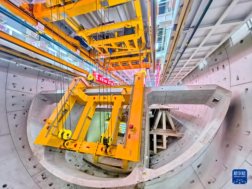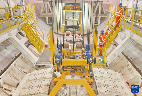 9月28日,施工人员在海太长江隧道工程施工现场拼装管片。(新华社发 许丛军 摄)