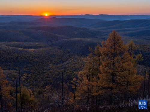 这是9月28日在内蒙古呼伦贝尔市牙克石市绰河源镇拍摄的大兴安岭林海日出。(新华社记者 马金瑞 摄)