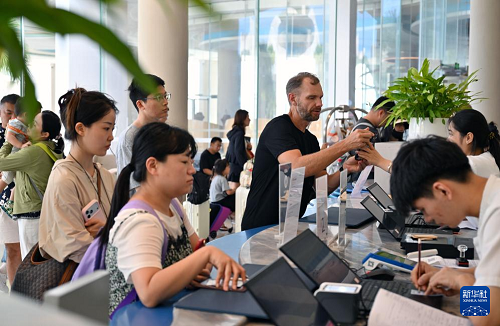 10月18日,游客在海南陵水一家酒店的前台办理手续。(新华社记者 郭程 摄)