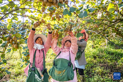 10月23日,农民在云南省文山壮族苗族自治州西畴县国家石漠公园猕猴桃种植基地采摘猕猴桃。(新华社发 熊平祥 摄)