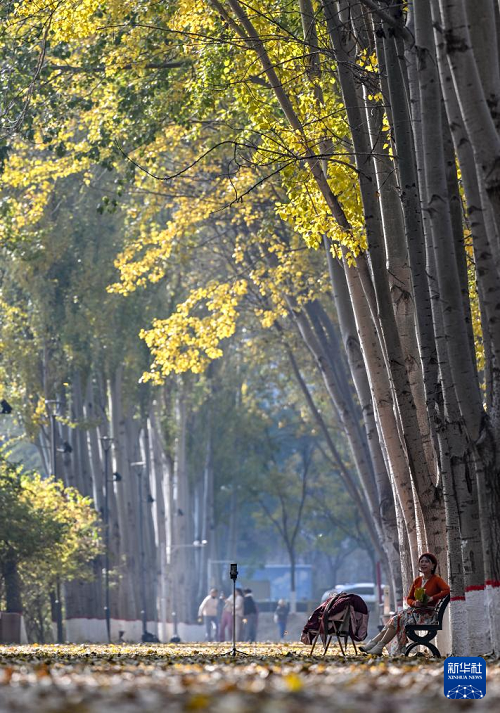 10月28日,市民在银川市海宝公园休闲、散步。(新华社记者 冯开华 摄)