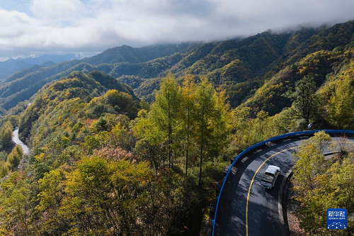 10月30日拍摄的镇坪县境内化龙山秋日景色(无人机照片)。(新华社记者 邵瑞 摄)