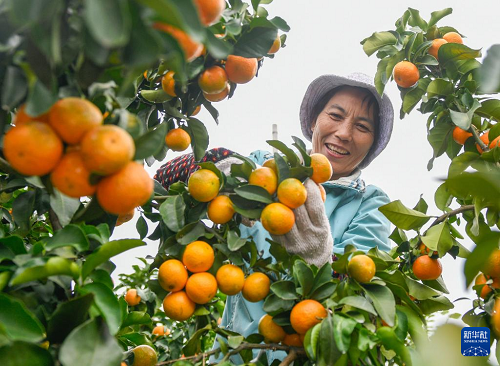 11月2日,湖南省永州市道县蚣坝镇兴桥村村民在采摘沙糖桔。(新华社发 蒋克青 摄)