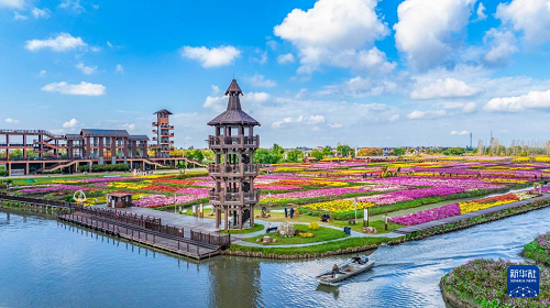 11月2日,游客在江苏省兴化市千垛景区赏菊游玩(无人机照片)。(新华社发 周社根 摄)
