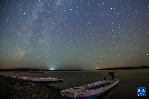 10月28日在黑龙江省嘉荫县黑龙江畔拍摄的秋季银河下的黑龙江。(新华社发 李绍军 摄)