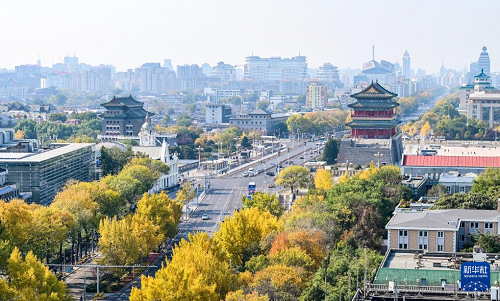 11月3日拍摄的北京天安门广场建筑群及周边的秋色。(新华社记者 陈晔华 摄)