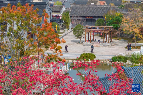 11月9日,游客在江苏省淮安市淮安区河下古镇游玩(无人机照片)(新华社发 张建 摄)