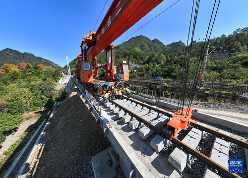 11月16日,随着最后一组轨排精准落地,由中铁二十局承建的贵州瓮马铁路南延伸线架梁铺轨工程顺利完工,为瓮马铁路南北延伸线建成通车奠定基础。