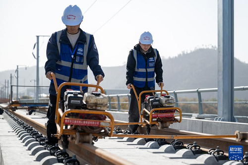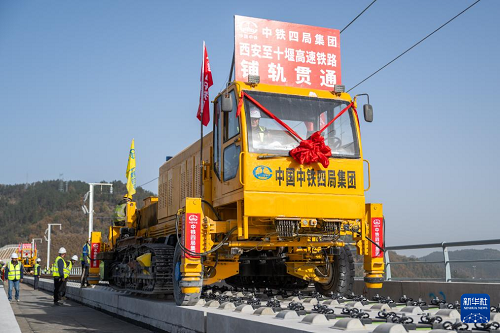 11月27日,在湖北十堰神定河特大桥上,西安至十堰高速铁路(简称“西十高铁”)全线最后一对长钢轨铺设落地,标志着西十高铁全线铺轨工程顺利完工,为后续联调联试奠定基础。