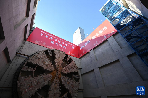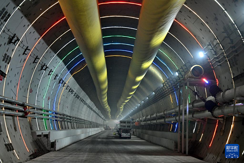 11月27日拍摄的津潍高铁津沽海河隧道。(新华社记者 李然 摄)