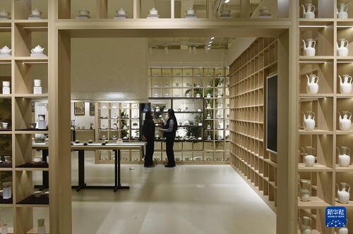 这是12月25日在河北省曲阳县拍摄的一家定瓷生产企业的展厅。(新华社记者 鲁鹏 摄)
