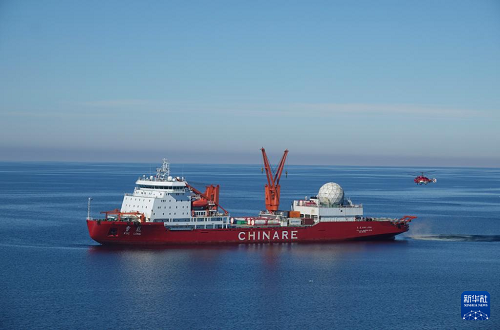12月29日在秦岭站海域拍摄的“雪龙”号极地科考破冰船。(新华社记者 顾天成 摄)