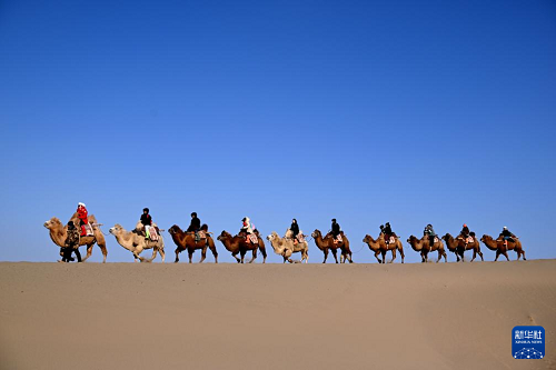 1月2日,游客在甘肃省敦煌市鸣沙山月牙泉景区游览。(新华社发 张晓亮 摄)