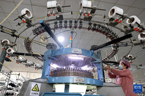 1月4日,在山东省枣庄市市中区税郭镇一家企业,工人在生产服装面料产品。(新华社发 孙中喆 摄)