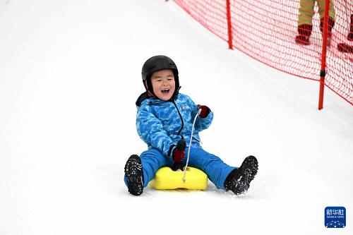 1月11日,小朋友在石家庄市“热雪奇迹”滑雪场体验冰雪运动。(新华社发 陈其保 摄)