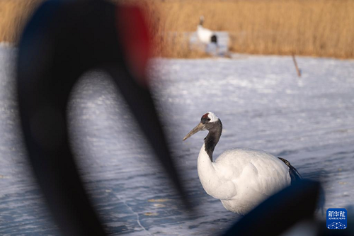 这是1月21日拍摄的黑龙江扎龙国家级自然保护区内的丹顶鹤。(新华社记者 张涛 摄)