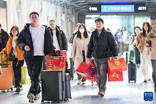 2月13日,旅客从南京火车站出行。(新华社发 杨素平 摄)