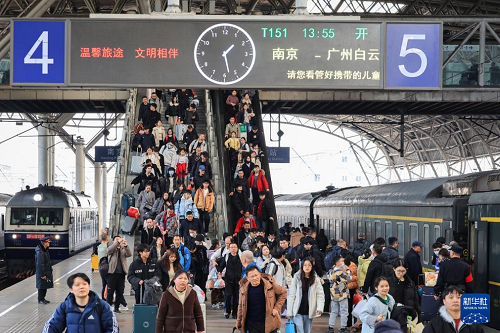 2月13日,旅客在南京火车站乘车出行。(新华社发 苏阳 摄)