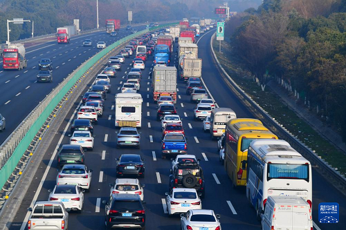 2月13日拍摄的京沪高速江苏无锡段的车流。(新华社发 还月亮 摄)