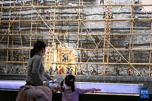 2月12日,小朋友和家长在南京城墙博物馆参观。(新华社发 杨素平 摄)