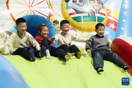2月13日,小朋友在河南省洛阳市汝阳县刘伶广场玩耍。(新华社发 康红军 摄)
