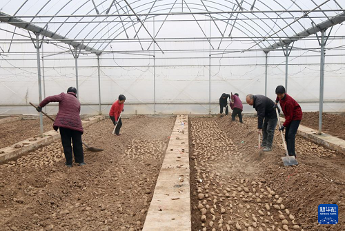 2月25日,河南省洛阳市汝阳县刘店镇沙坪村村民在温棚内培育优质红薯苗。(新华社发 康红军 摄)