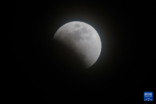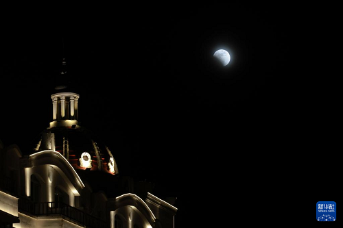 3月3日在黑龙江省抚远市拍摄的月全食初亏阶段。(新华社发 李拥军 摄)