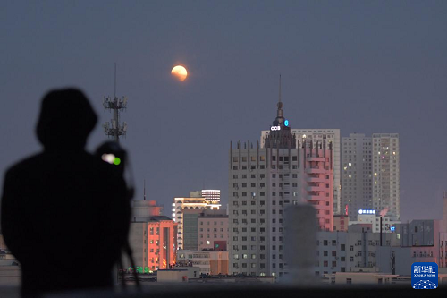 3月3日,在黑龙江省齐齐哈尔市,摄影爱好者在拍摄月全食。(新华社发 王勇刚 摄)