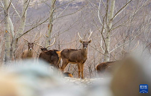 这是3月15日在西藏山南市乃东区结巴村拍摄的白唇鹿。(新华社记者 晋美多吉 摄)