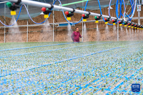3月18日,山西省运城市夏县庙前镇杨村的村民使用喷灌设备为西瓜苗浇水。(新华社记者 曹阳 摄)