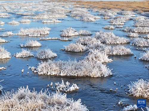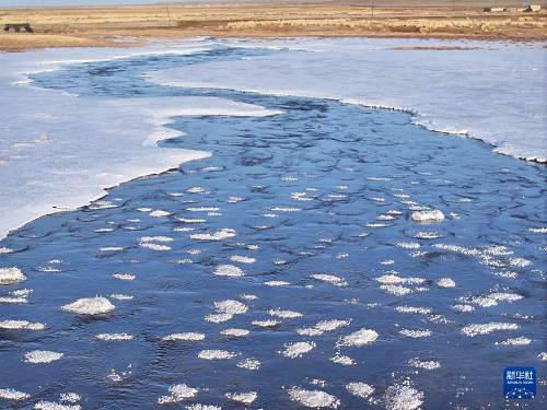 春回大地,位于甘肃省阿克塞哈萨克族自治县阿勒腾乡的哈尔腾河冰雪消融,初现生机。