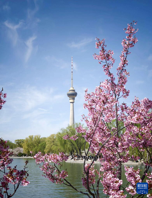 4月1日拍摄的北京玉渊潭公园盛开的樱花。(新华社记者 邢广利 摄)
