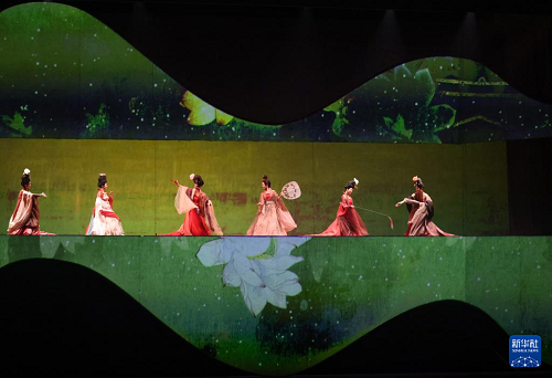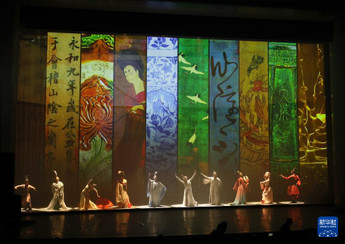 在辽宁大剧院拍摄的《古色·国宝辽宁》演出现场(4月19日摄)。(新华社记者 李钢 摄)