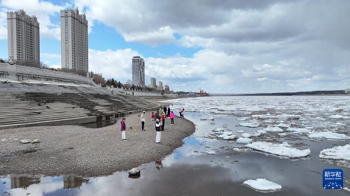 近日,中俄界江黑龙江黑河段进入春季流冰期。大量冰排浩荡而下,景象壮观。