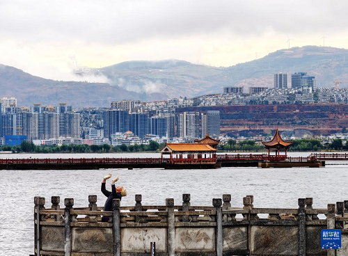 4月29日清晨,市民在洱海边晨练。(新华社记者 邢广利 摄)