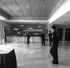 昨天白天大部分时段酒店门口都是冷冷清清,偶有几位记者试图进入酒店,也均被大堂经理客气请出。
