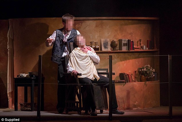 这周三,新西兰的一个私立学校的剧团也排了这部剧,然而正是演出的时候,这个割喉场景出现了意外。这两名扮演受害者的学生演员被当场割喉,血溅舞台。因为按照编剧的流程,两名受害者被割喉后就被通过椅子下面的机关门送到了舞台下,整部剧之后还照常演出。台下的不少观众之后接受采访时表示,他们当时还以为剧组用的是假血,还在感叹他们做效果做的如此逼真。事后才知道,那些都是真血。