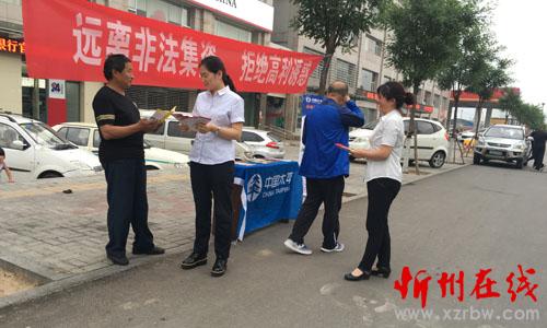 近日,太平财险忻州中支积极落实《山西保险业“慧眼 守信 明责”防范非法集资主题宣传月活动方案的通知》精神,在全辖开展以“慧明 守信 明责”为主题的防范非法集资专题宣传月活动,旨在提高公司员工及社会公众对非法集资的防范意识,鼓励检举揭发非法集资行为,引导民众自觉抵制非法集资。