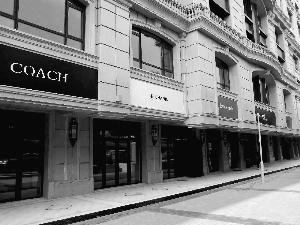 昨日,北京晨报记者来到位于建国门桥附近的中海枫丹公馆,看到整个楼盘有五栋楼,呈凹字形。建筑物四周设有30多个大小不一的底商,每个底商顶部都挂着一个看似国际大牌的招牌,既有奢侈品,也有快餐业,颜色鲜艳,十分夺目。就在这些大牌的招牌旁边,张贴着大幅广告“黄金旺铺火爆招商中”。
