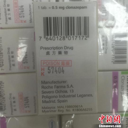 经查验发现,背包内放置着23盒崭新的药物,共计1.4千克。这些药物分四排用透明塑料纸缠绕,每个盒子内装有一个塑料药瓶,内有50片药丸。药盒上及内部的说明书均为外文印刷。在最外面包装上,贴着用中文繁体字印刷的“毒药”和“处方药物”字样。关员立刻查阅了药品说明,发现这些药物居然是被称为“最强安眠药”的氯硝西泮。