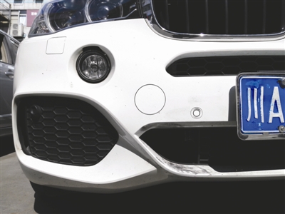 宝马车上发现可疑装置的位置——车头前右侧进气口