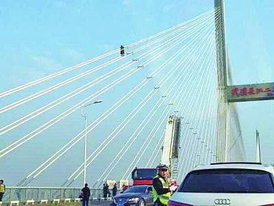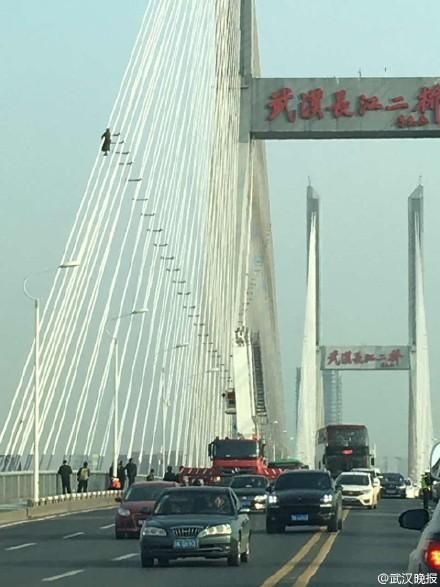 据武汉晚报13日报道,12日下午1点半,一名六旬男子爬上湖北武汉长江二桥斜拉索,离桥面约30米,声称要跳桥。民警、消防赶到现场救援,僵持一个小时后,消防出动云梯施救,方才将轻生男子救下接回桥面。这起事故导致二桥和汉口、武昌多处道路交通拥堵近3个小时,直至昨天下午5点,交通才恢复正常。