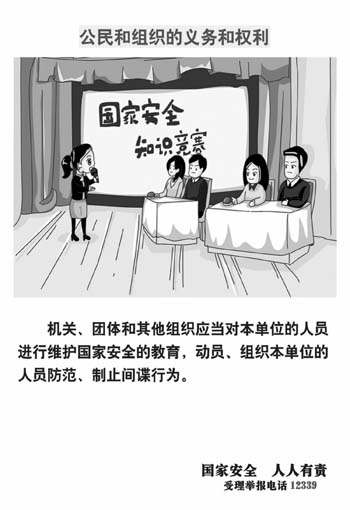 4月15日是《国家安全法》颁布实施以来的第二个“全民国家安全教育日”。为进一步提高全民国家安全意识,增强全民国家安全责任,努力构建反奸防谍人民防线“钢铁长城”,本报特推出国家安全教育系列宣传内容,希望广大人民群众自觉践行法定权责,不断提升维护国家安全利益的自觉性,树立严格保密意识,积极支持和协助国家安全机关开展工作,为维护国家安全和社会政治稳定倾注热情、贡献力量。