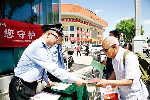 本报讯 5月15日上午,忻府区公安局在七一北路体育广场警务室门前开展了以“与民同心、为您守护”为主题的打击和防范经济犯罪宣传日活动,受到市民群众的欢迎。
