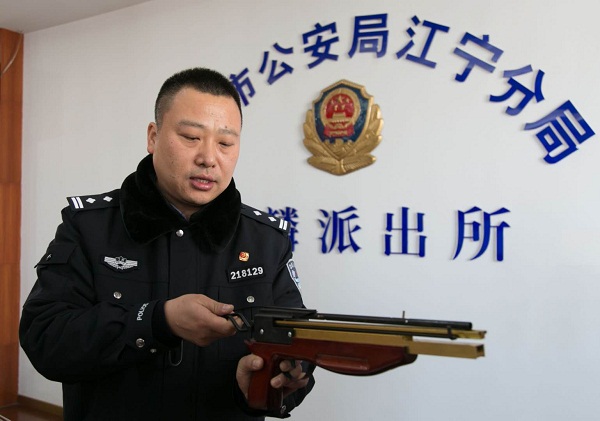 办案民警介绍弩的杀伤力及给公共安全带来的危害。宁公宣摄
