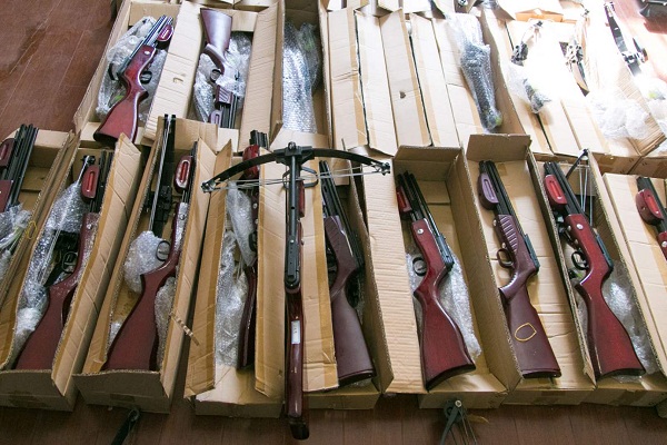 3月29日,专案组奔赴山东。在山东临沂警方的配合下,将向二人销售弩的李某某抓获,并在其储存窝点收缴弩110支、弩箭1100支。