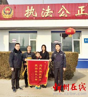 本报讯 3月7日上午,忻府区奇村镇明望村村民贾某来到奇村派出所,把一面写着“找回丢失儿童,为民排忧解难”的锦旗送到民警手中,对派出所民警出警迅速、及时帮他找到走失孩子表示感谢。