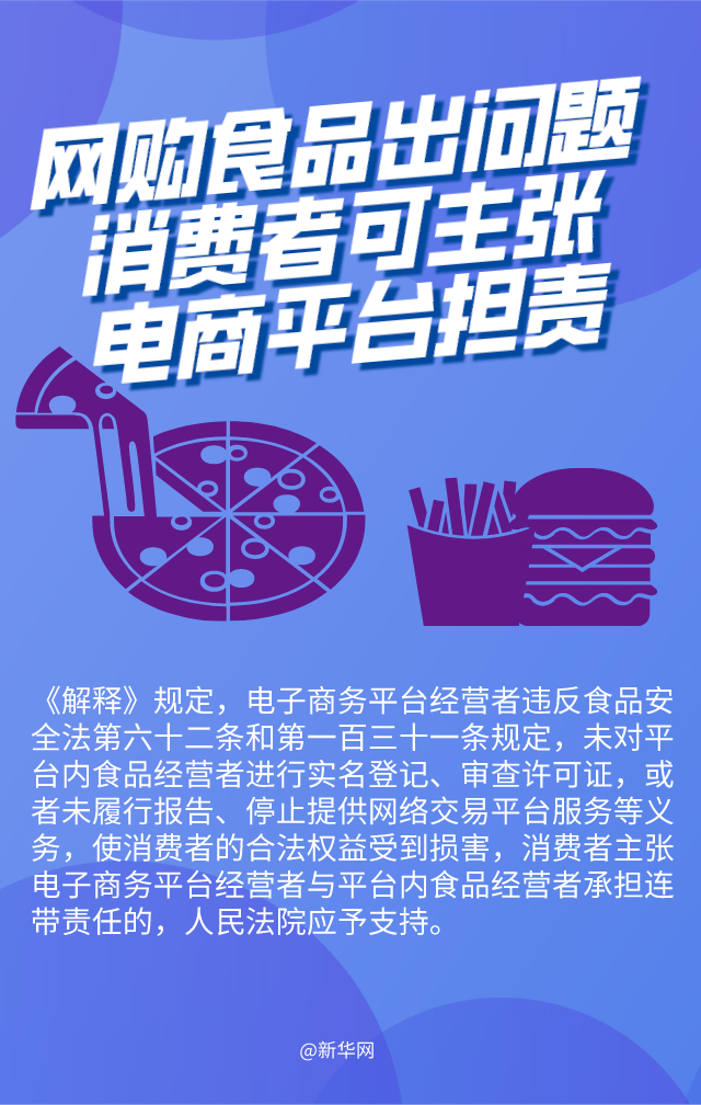 对此,《解释》规定,电子商务平台经营者违反食品安全法第六十二条和第一百三十一条规定,未对平台内食品经营者进行实名登记、审查许可证,或者未履行报告、停止提供网络交易平台服务等义务,使消费者的合法权益受到损害,消费者主张电子商务平台经营者与平台内食品经营者承担连带责任的,人民法院应予支持。