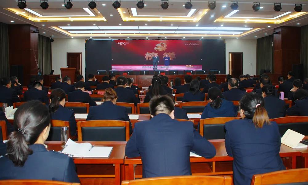 首先,与会干警齐唱《人民检察官之歌》。“我们人民的检察官,在庄严的国徽下集合……”激越铿锵的歌声久久回荡、不绝于耳。文以载道,歌以咏志。全体干警用歌声唱出了检察人的慷慨昂扬,唱出了检察人的拳拳真意,唱出了检察人的初心不改,唱出了检察人的使命担当。