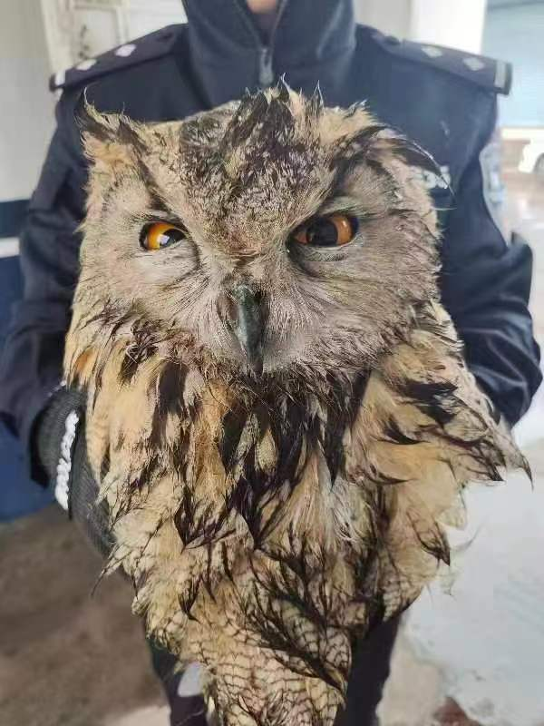 民警立即到达现场,仔细查看后发现猫头鹰翅膀受伤,因巡镇镇没有专门的野生动物救助站,于是将其送往当地兽医站治疗。